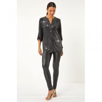 Sponsorisé Roman Dotted Foil Print Stretch Blouse42 Métallique