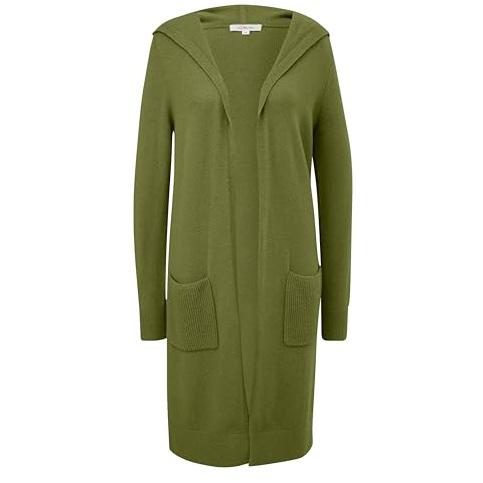 Gesponsert Kapuzenstrickjacke S.OLIVER, Damen, Gr. 38, grün, Obermaterial: 50% Baumwolle, 25% Polyamid, 14% Polyacryl, 8% Wolle, 3% Elasthan, casual, regular fit knielang, Langarm, Strickjacken, ohne Verschluss, mit Seitentaschen