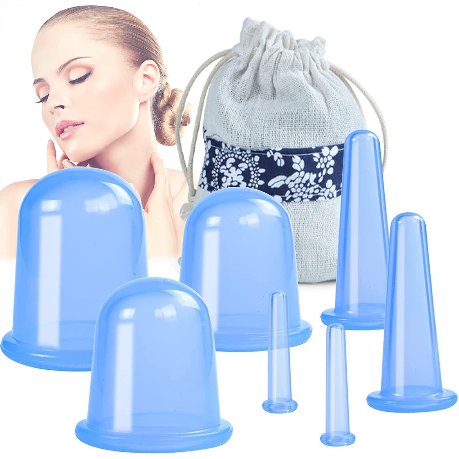 Patrocinado Juegos de terapia de ventosas, Copa anticelulitis de silicona, ventosa de vacío, copa de masaje azul, conjuntos de ventosas faciales, masajeador corporal y Facial