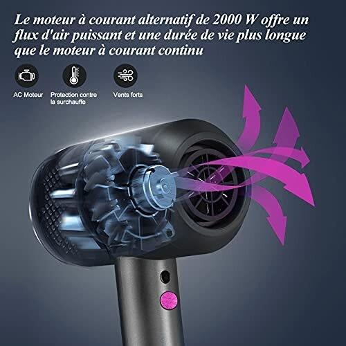 Seche cheveux Professionnel Ionique 2000W HappyGoo Hair Dryer 1 diffuseur 2 buses de coiffage 3 chauffages séchoir cheveux thermo protect pour la famille et les salons de coiffure (Bleu)
