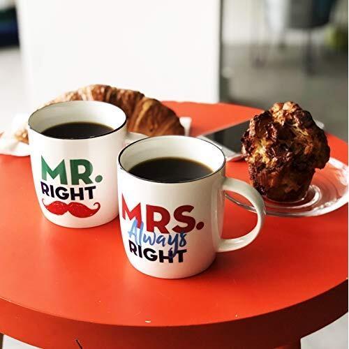 Sponsored Triple Gifffted Mr Right and Mrs Always Right Coffee Mugs Gifts for Wedding Anniversary, Engagement, Christmas, Valentines Day Set for Couple/Her/His/