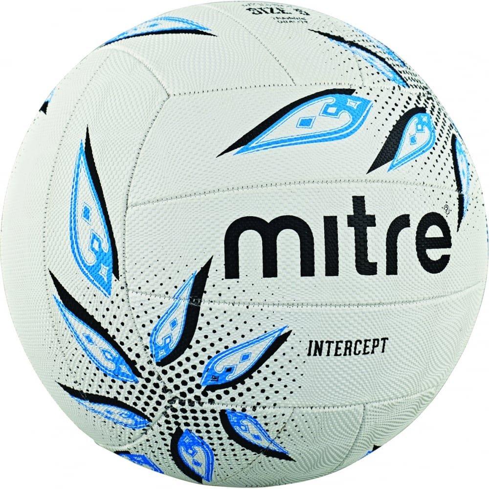 Sponsored Mitre Intercept Netball - White/Black/Cyan 5 (Ages 14+)